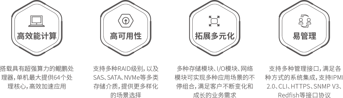 凯发K8 KunTai R721高密服务器是神州数码基于鲲鹏基础硬件推出的新一代高密度计算设备。其具备高效能计算、安全可靠与开放生态优势。
