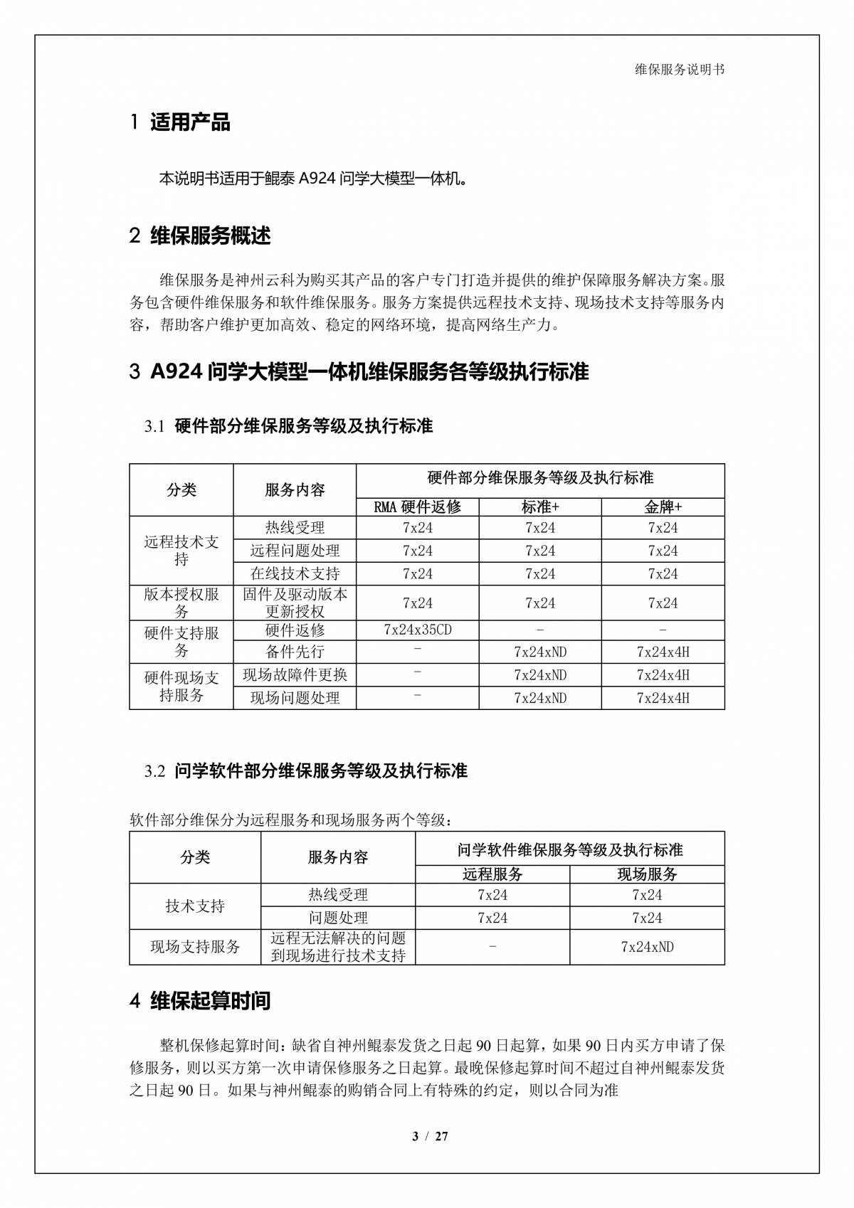凯发K8A924 问学大模型一体机维保服务说明书_V1.0